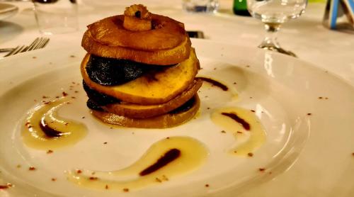 As refeições no restaurante da Quinta de Santo Estêvão Hotel Rural são preparadas com o gado criado na quinta. Um buffet de pequeno-almoço é servido diariamente na sala de pequenos-almoços, que apresenta paredes em pedra exposta.